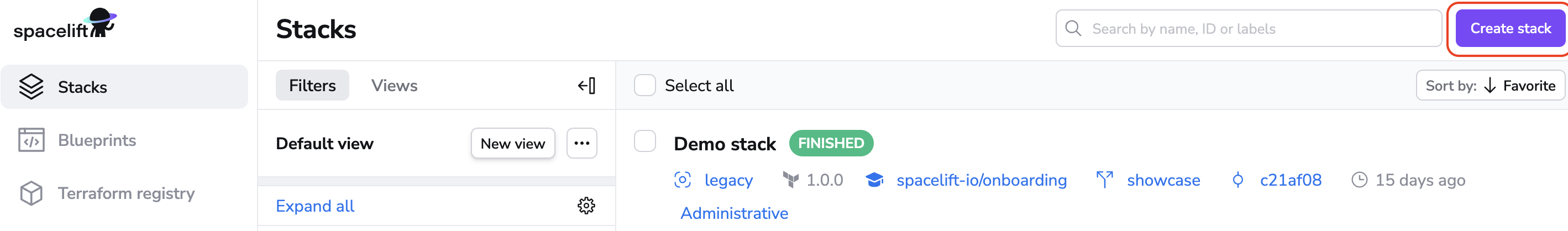 In this section we will be cover creating your first Spacelift Stack. For more detailed instructions on creating your first Spacelift Stack, click here.