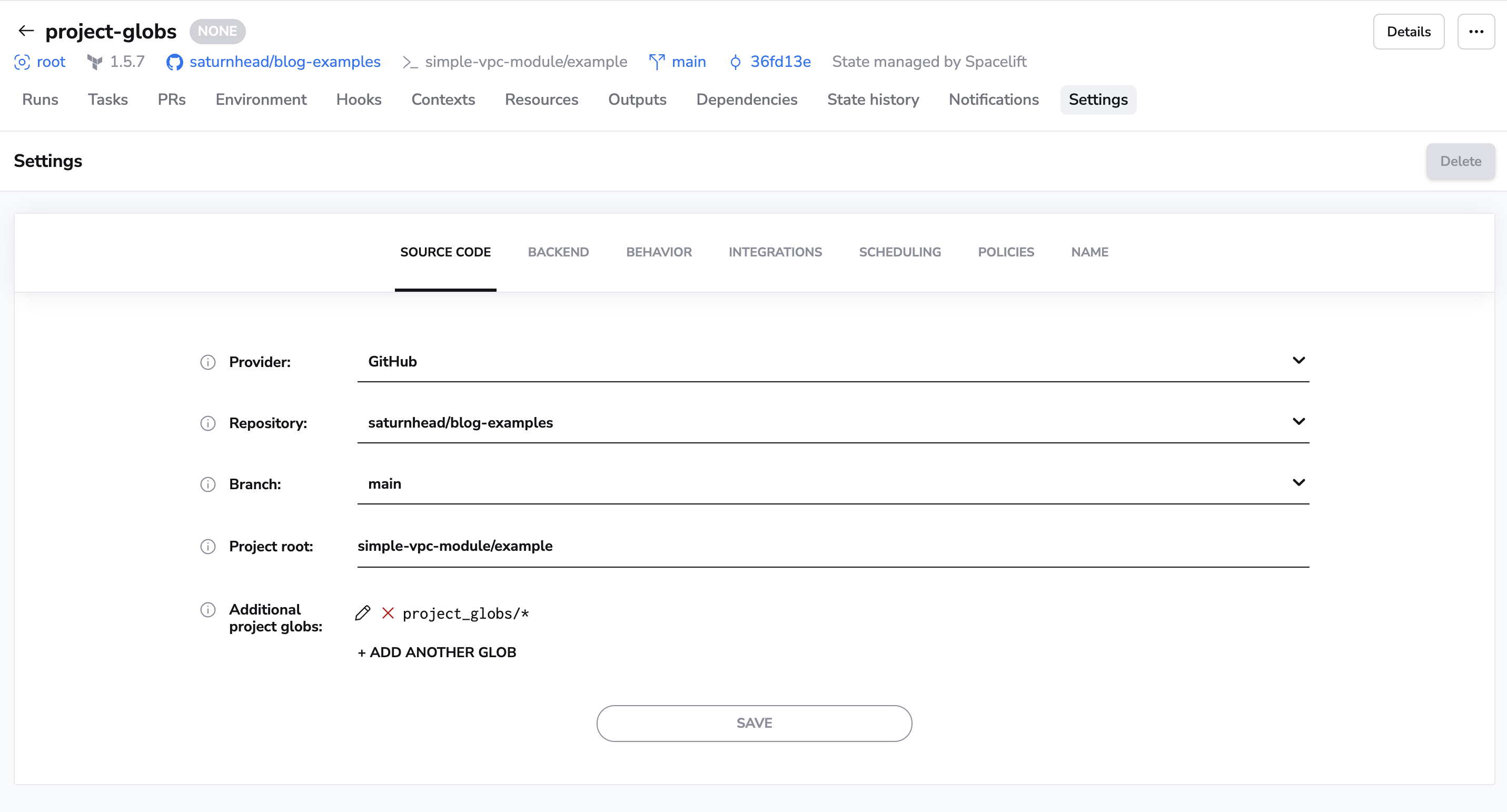 The project globs option allows you to specify files and directories outside of the project root that the stack cares about. In the absence of push policies, any changes made to the project root and any paths specified by project globs will trigger Spacelift runs.
