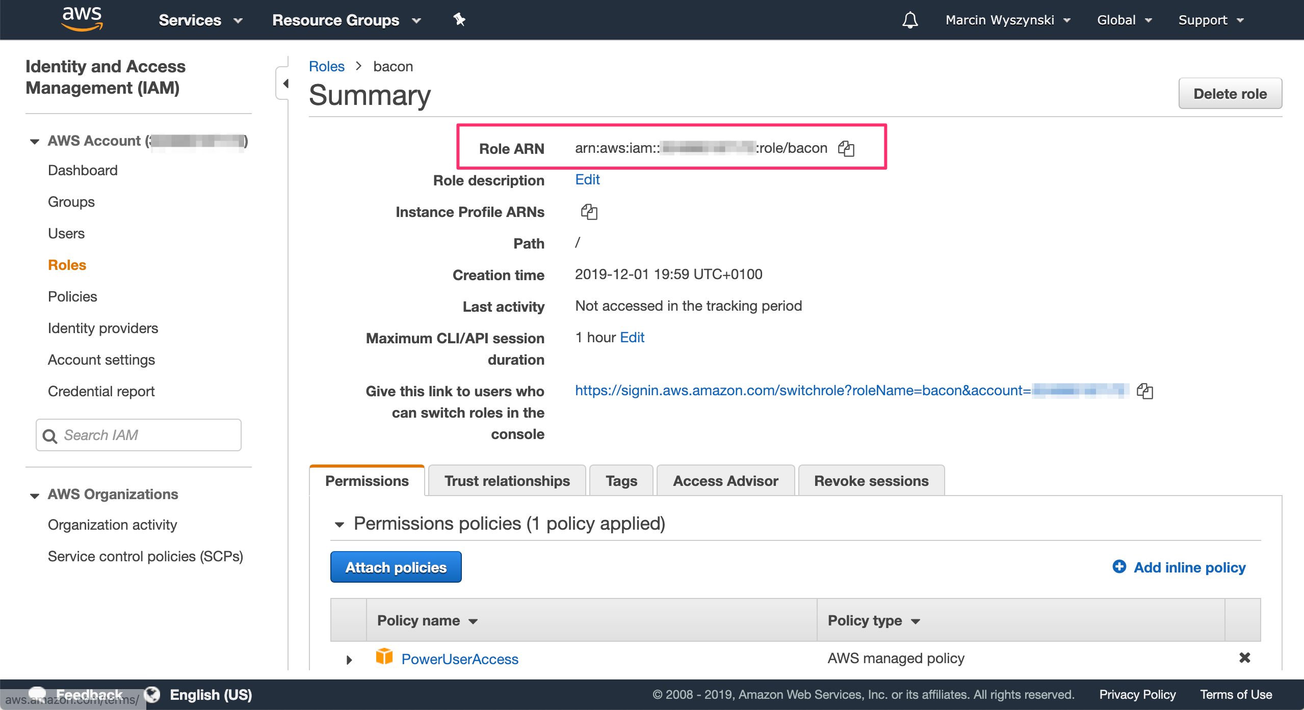 Once you have your IAM Role's trust policy and IAM Policies configured, you can finish creating the role. Take a note of the IAM Role ARN, as you'll need this when setting up the integration in Spacelift in the next section.