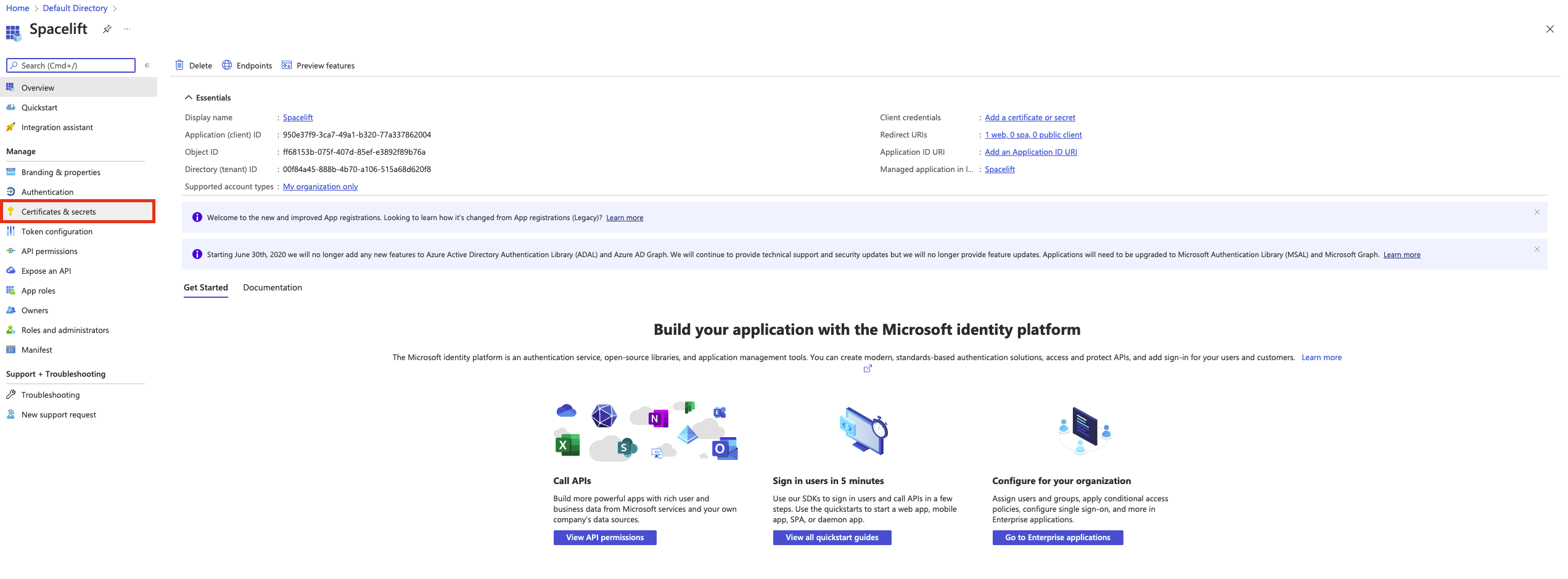 - Application (client) ID within Azure AD => Client ID on Spacelift