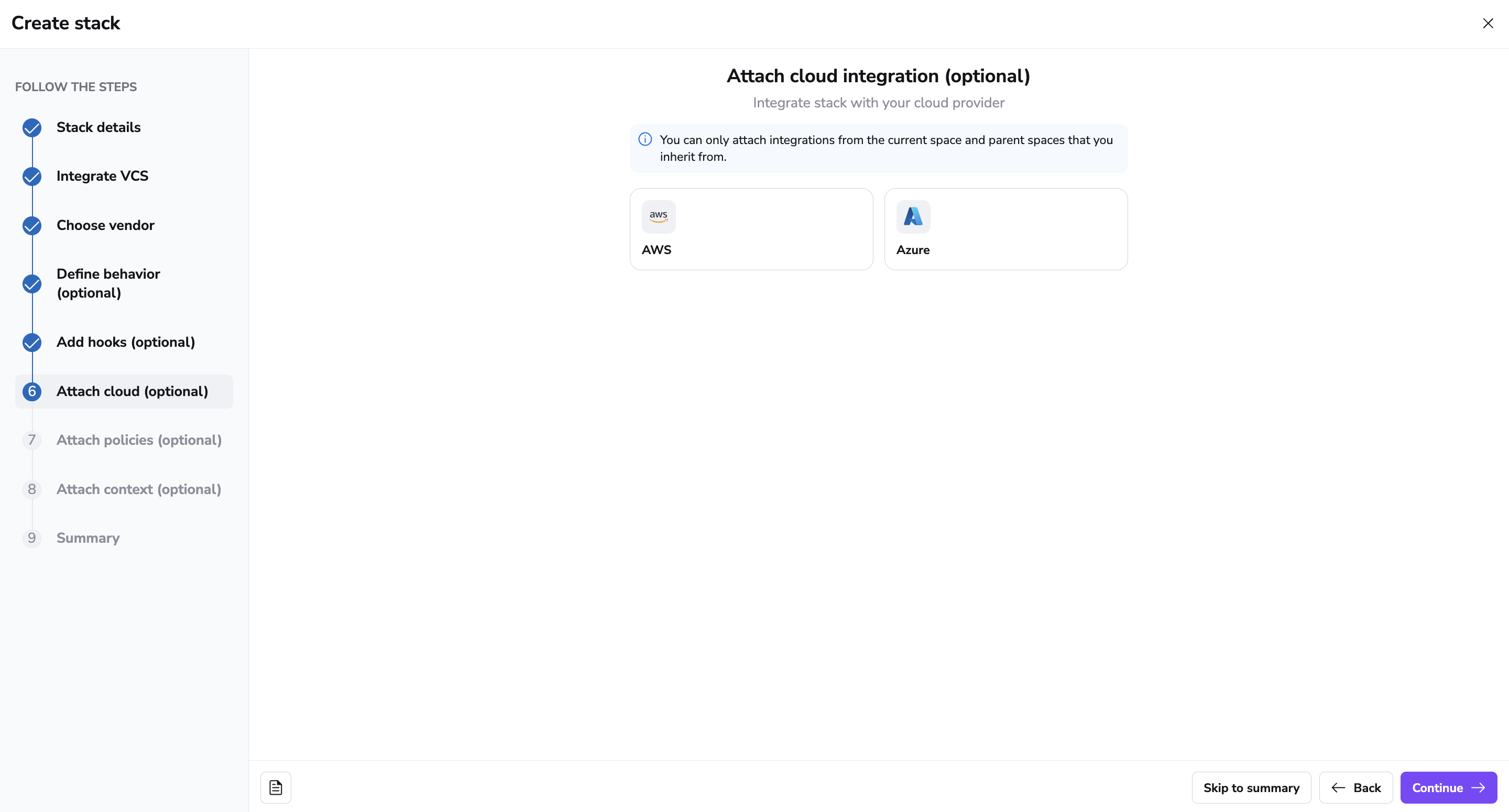 Attach Stack Cloud Integration»