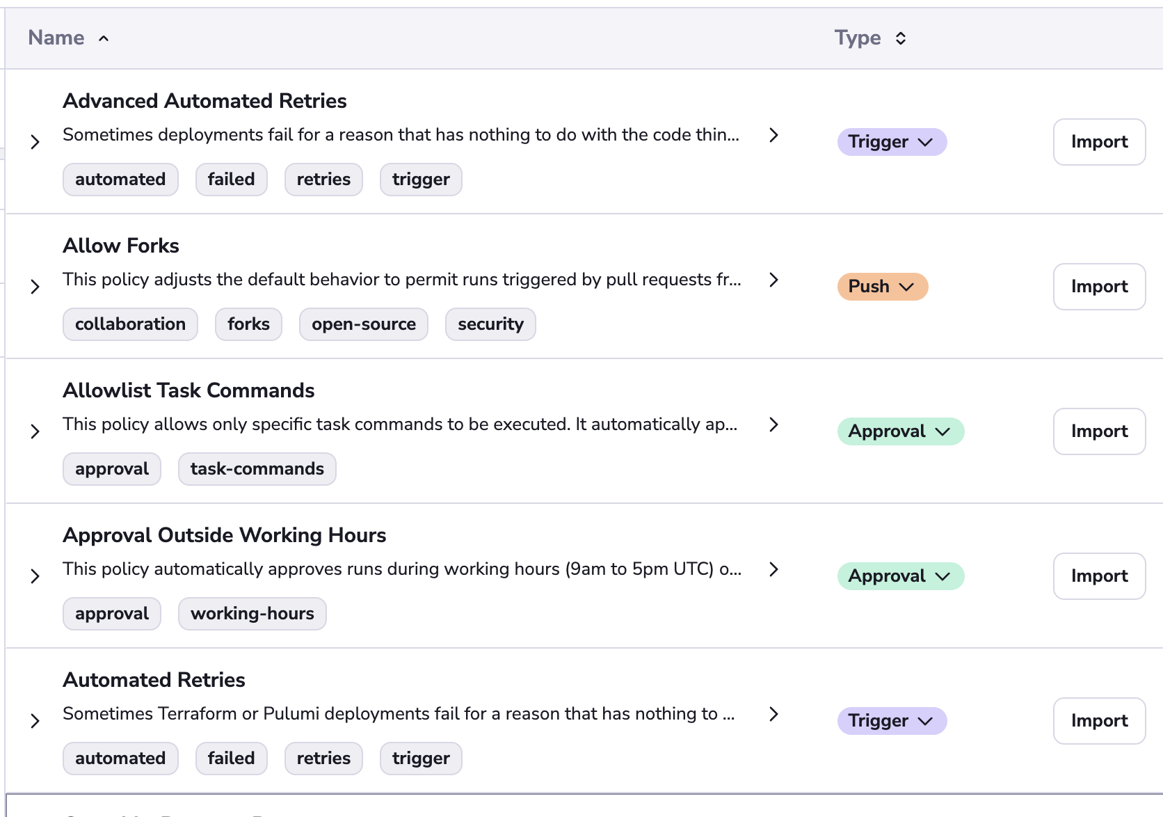 - Policy templates: quickly create and customize policies using predefined templates
