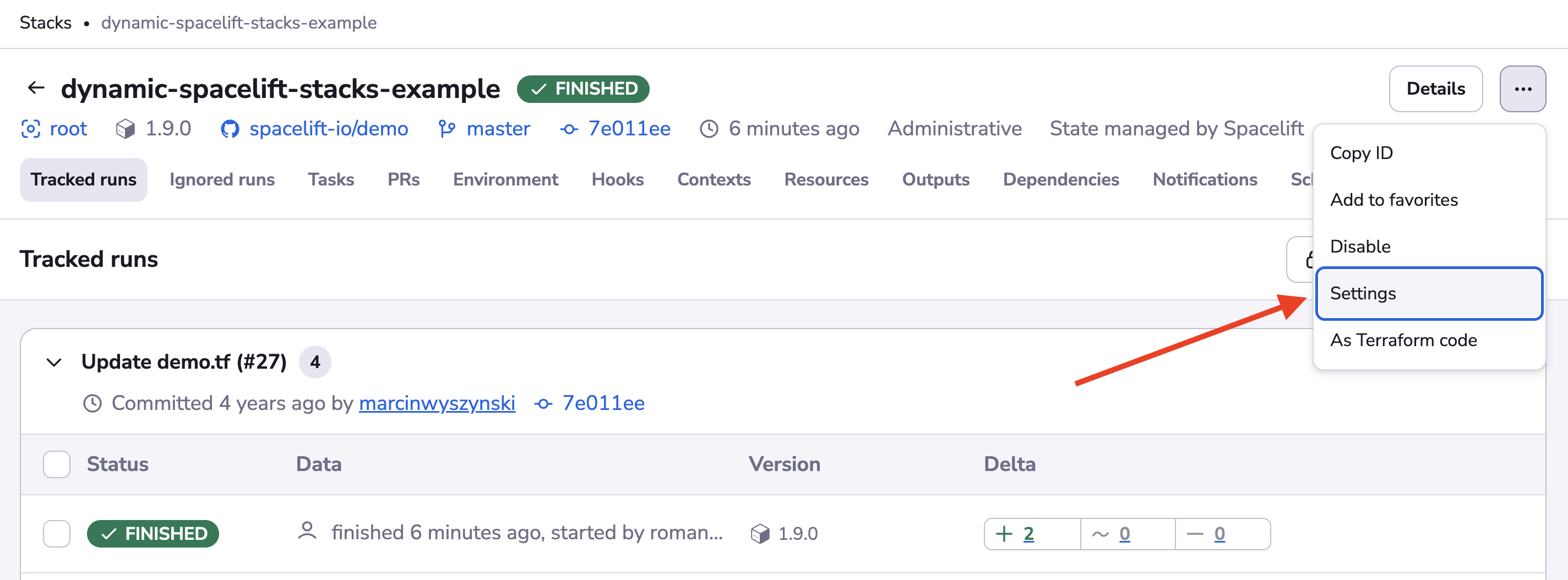 Next, go to the stack's settings: