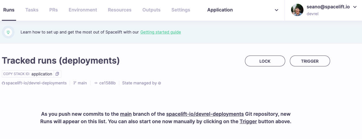 Once you have configured the necessary integration, navigate the Stack landing page and Trigger a Run.