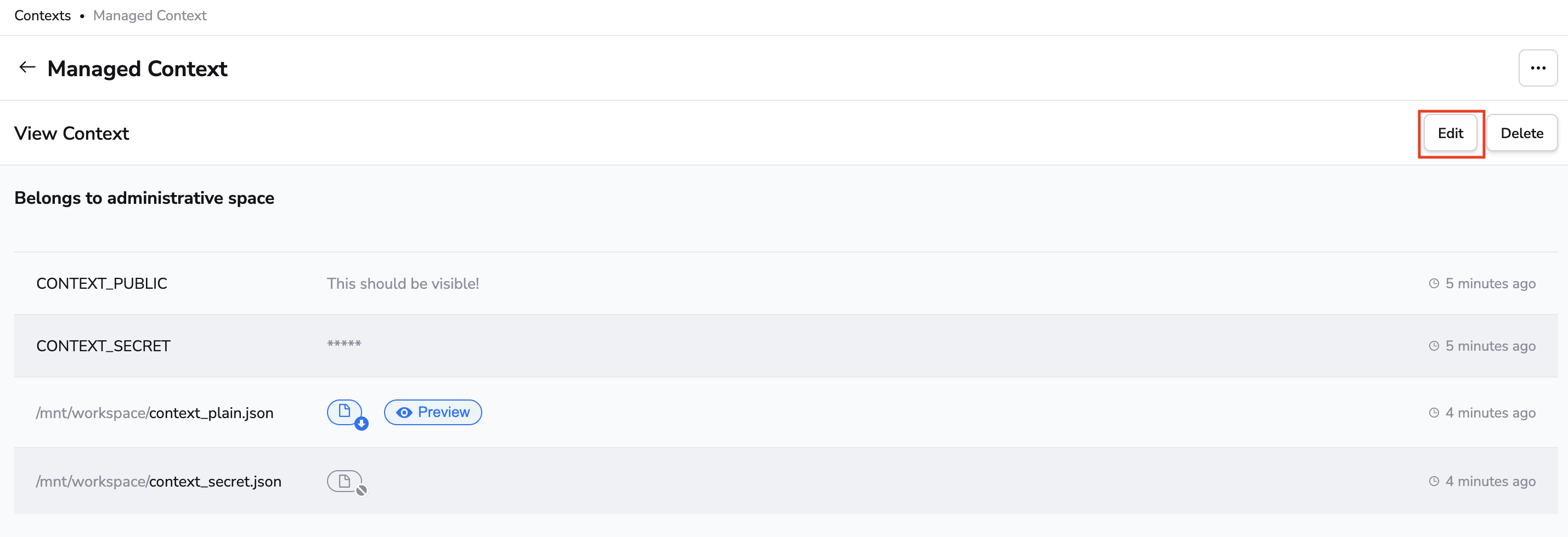 Editing the context is only a little more exciting. You can edit the context from its dedicated view by pressing the Edit button: