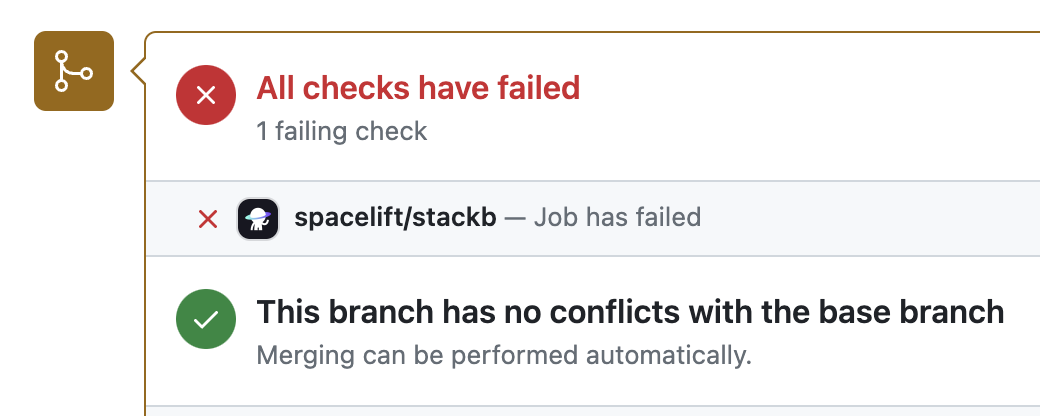 You can use commit statuses to protect your branches tracked by Spacelift stacks by ensuring that proposed runs succeed before merging their Pull Requests: