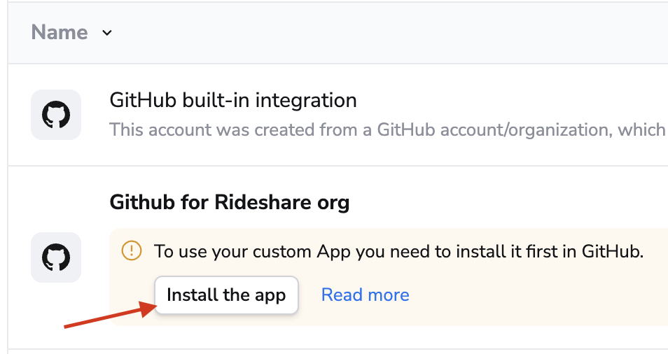 2. In the Install App section, click Install next to the account you want Spacelift to access: