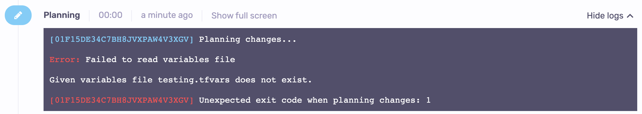 If the variable definitions file is not part of the repo, we can inject it dynamically. The above example can be fixed by supplying the variables file at the requested path: