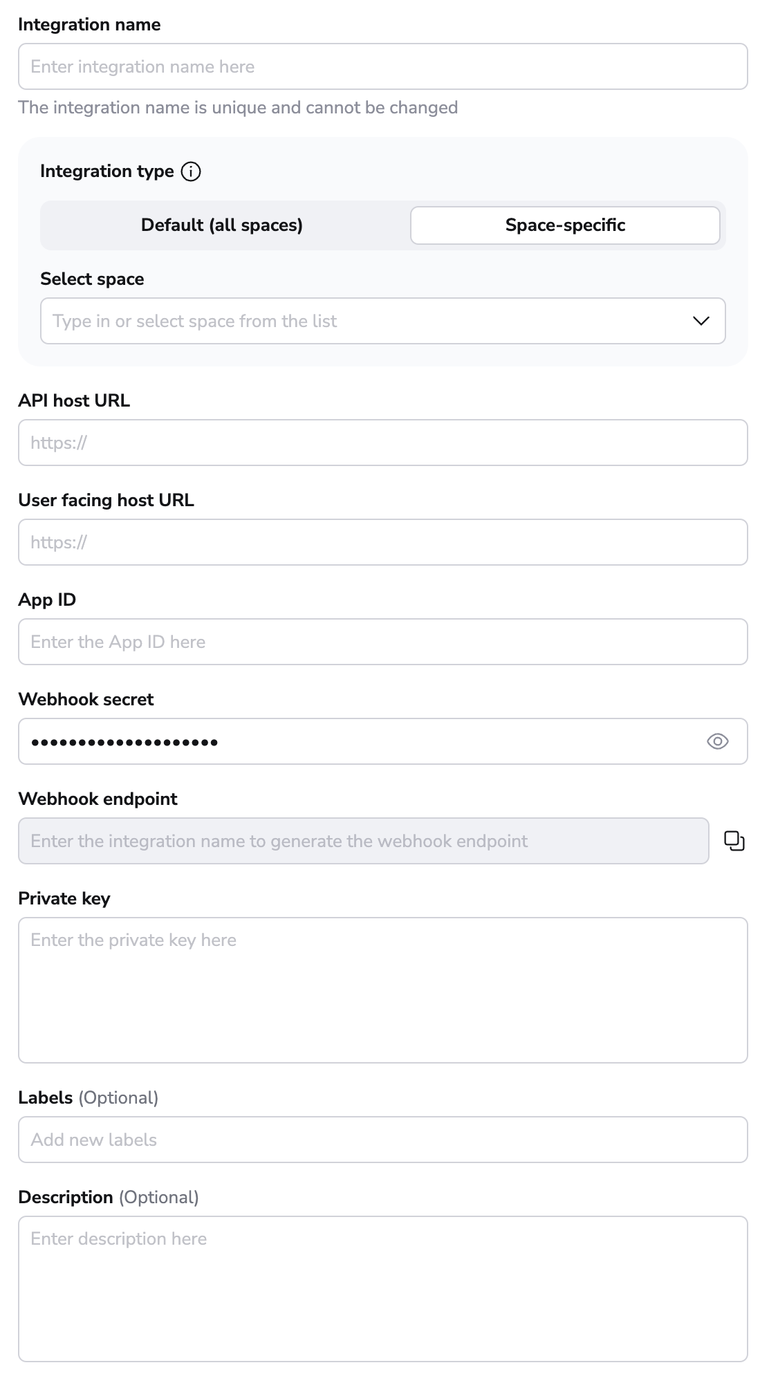 Only Space admins will be able to see the webhook URLs and secrets of Space-level integrations. Space readers will only be able to see the name, description, and labels of the integration.