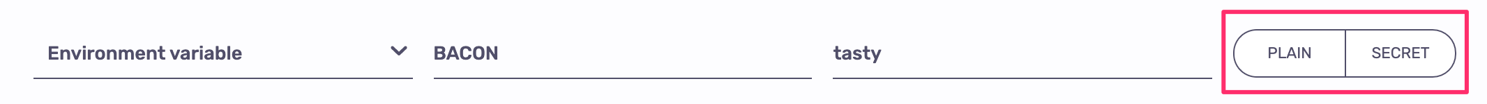 Perhaps you may have noticed how environment variables and mounted files come in two flavors - plain and secret. Here they are in the form for the new environment variable: