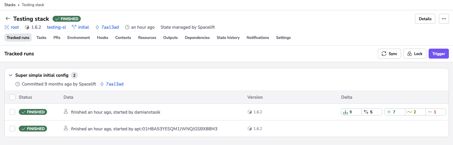 Tracked runs represent the actual changes to your infrastructure caused by changes to your infrastructure definitions and/or configuration. In that sense, they can be also called deployments. Tracked runs are effectively an extension of proposed runs - instead of stopping at the planning phase, they also allow you to apply the previewed changes.