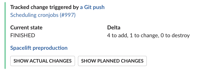 At Spacelift, we're using Slack for internal communication. And we know that other tech companies do the same, so we've created a first-class integration that we ourselves enjoy using.