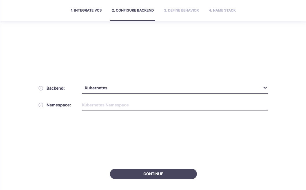 Choose Kubernetes from the dropdown list and type out the namespace.