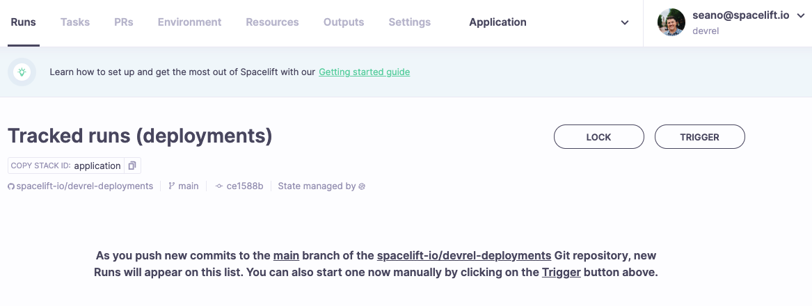 Once you have configured the necessary integration, navigate the Stack landing page and Trigger a Run.