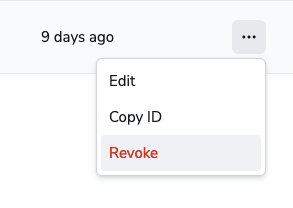 ... or by using the UI. In order to do that, click the Revoke button inside the three dots menu next to the key you want to revoke: