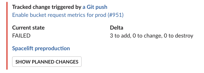 Our Slack integration allows users in the Slack workspace to interact with stacks by adding the ability to change their run state or view changes that are planned or were applied.